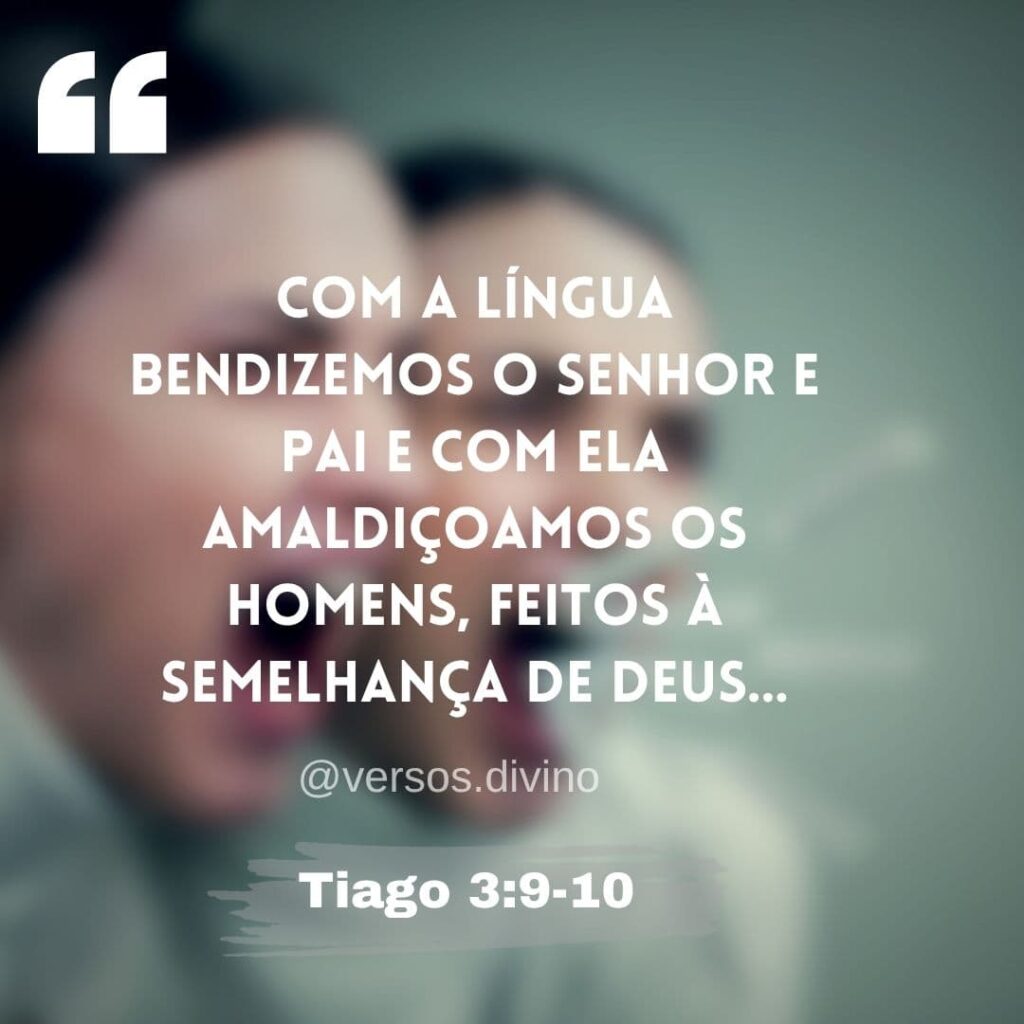 | Com a língua bendizemos o Senhor e Pai e com ela amaldiçoamos os homens, feitos à semelhança de Deus. Da mesma boca procedem bênção e maldição. Meus irmãos, não pode ser assim! ➤ NVI Tiago 3:9-10 |