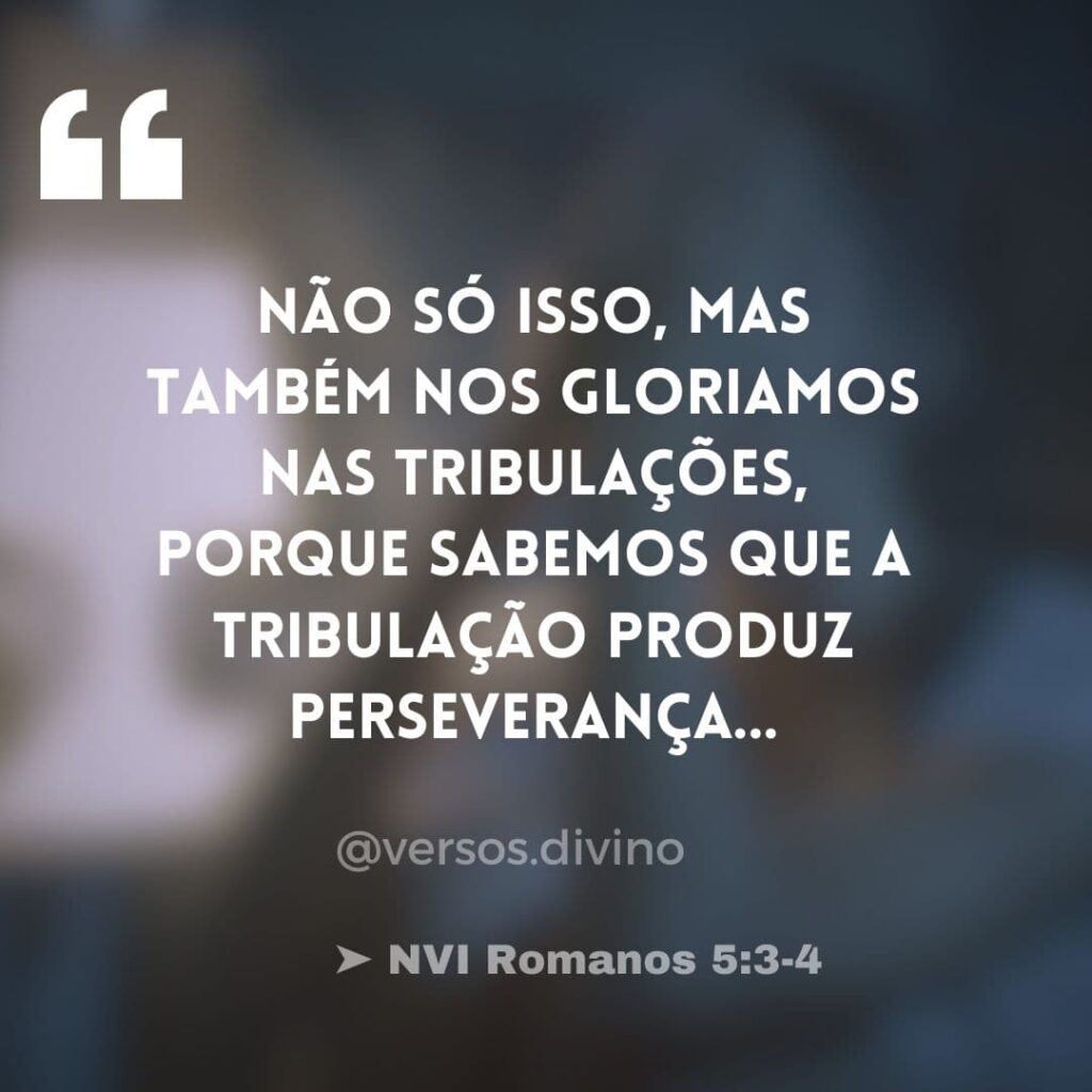 | Não só isso, mas também nos gloriamos nas tribulações, porque sabemos que a tribulação produz perseverança; a perseverança, um caráter aprovado; e o caráter aprovado, esperança. ➤ NVI Romanos 5:3-4 |