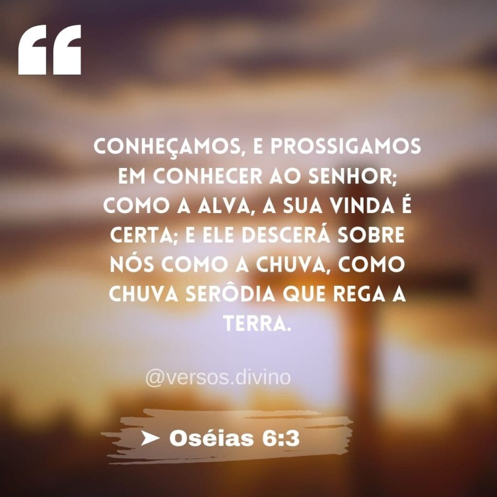 | Conheçamos, e prossigamos em conhecer ao Senhor; como a alva, a sua vinda é certa; e ele descerá sobre nós como a chuva, como chuva serôdia que rega a terra. ➤ Oséias 6:3 |