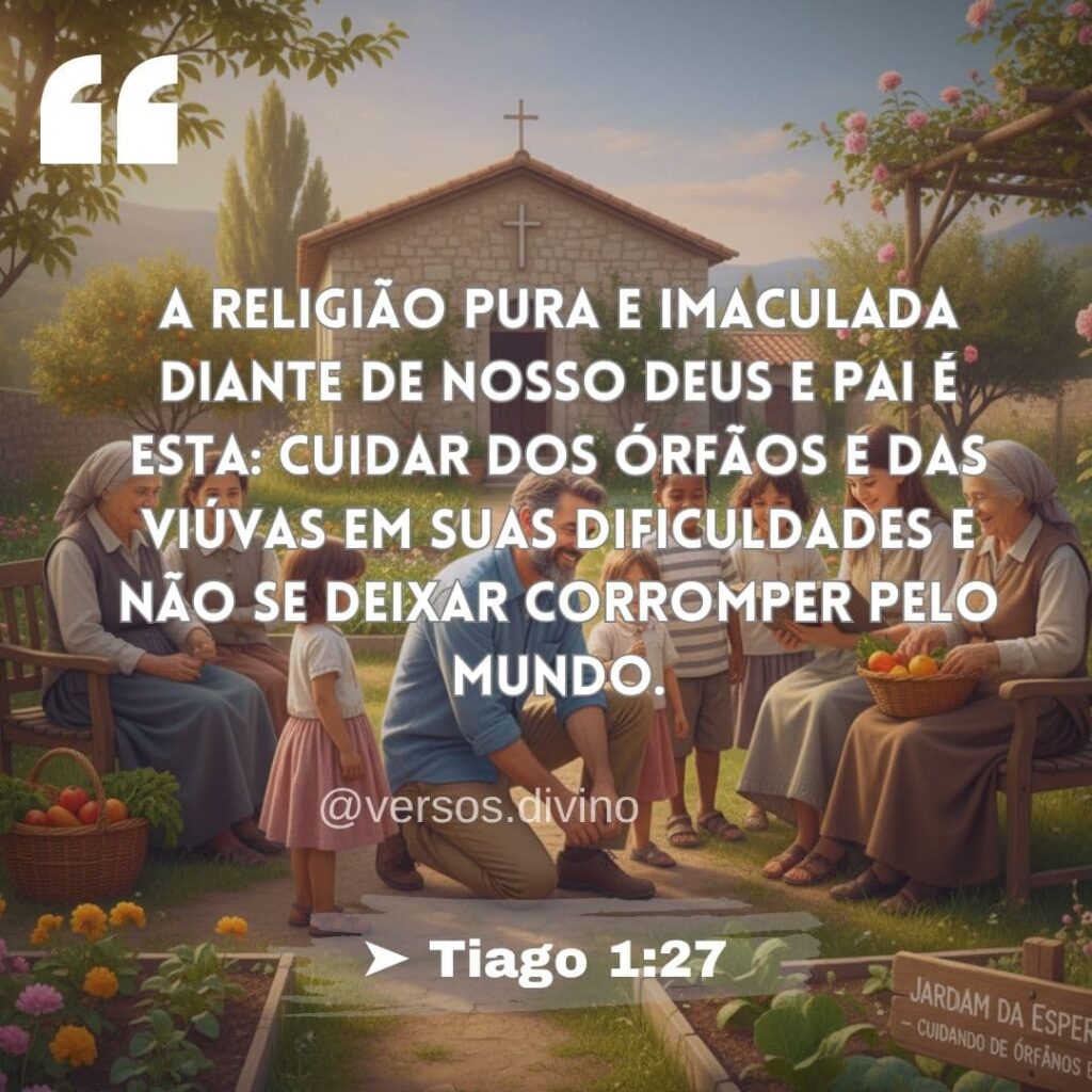 | A religião pura e imaculada para com Deus, o Pai, é esta: visitar os órfãos e as viúvas nas suas tribulações e guardar-se da corrupção do mundo. ➤ Tiago 1:27 |