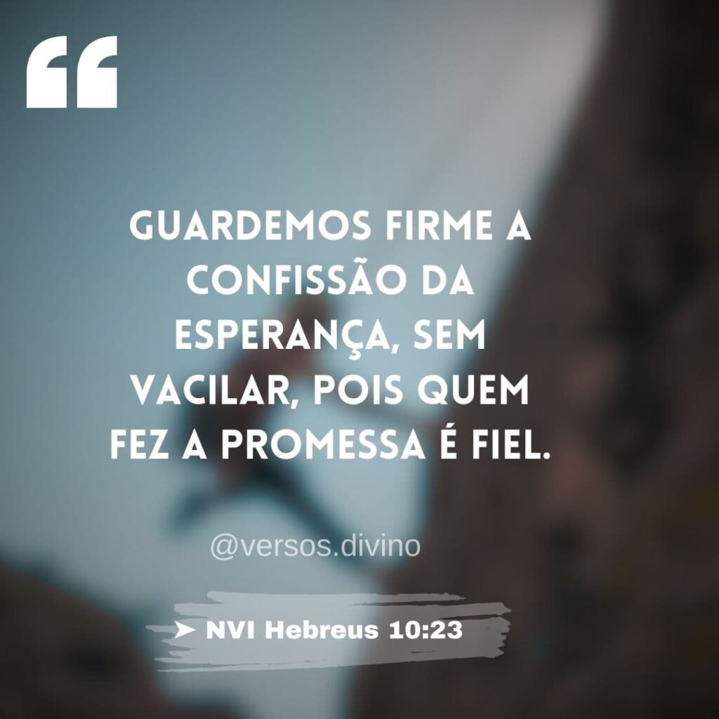 | Guardemos firme a confissão da esperança, sem vacilar, pois quem fez a promessa é fiel. ➤ NVI Hebreus 10:23 |