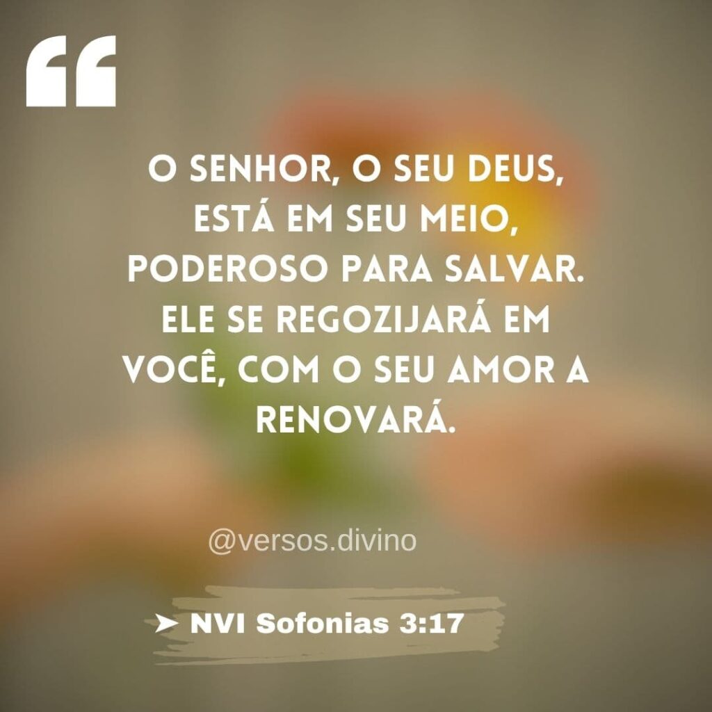 O Senhor, o seu Deus, está em seu meio, poderoso para salvar. Ele se regozijará em você, com o seu amor a renovará.