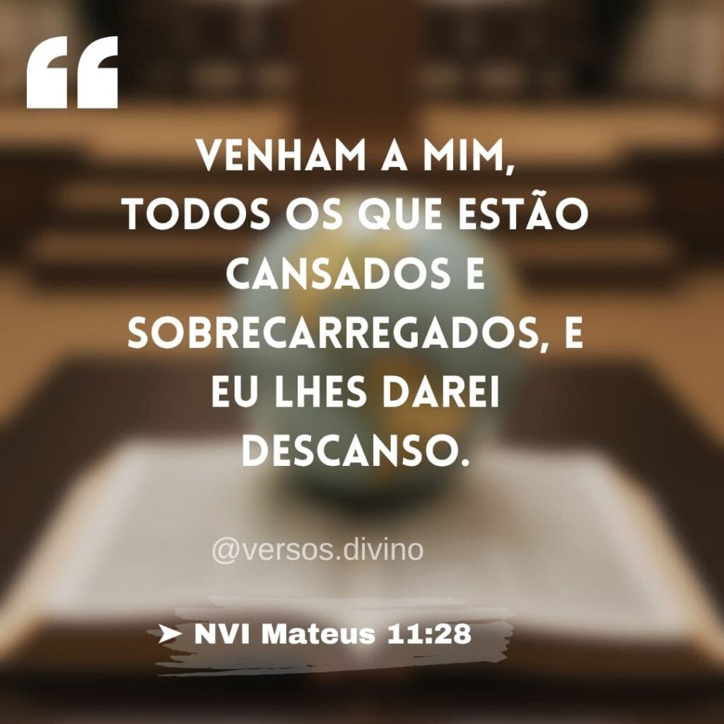 | “Venham a mim, todos os que estão cansados e sobrecarregados, e eu lhes darei descanso.” ➤ NVI Mateus 11:28 |