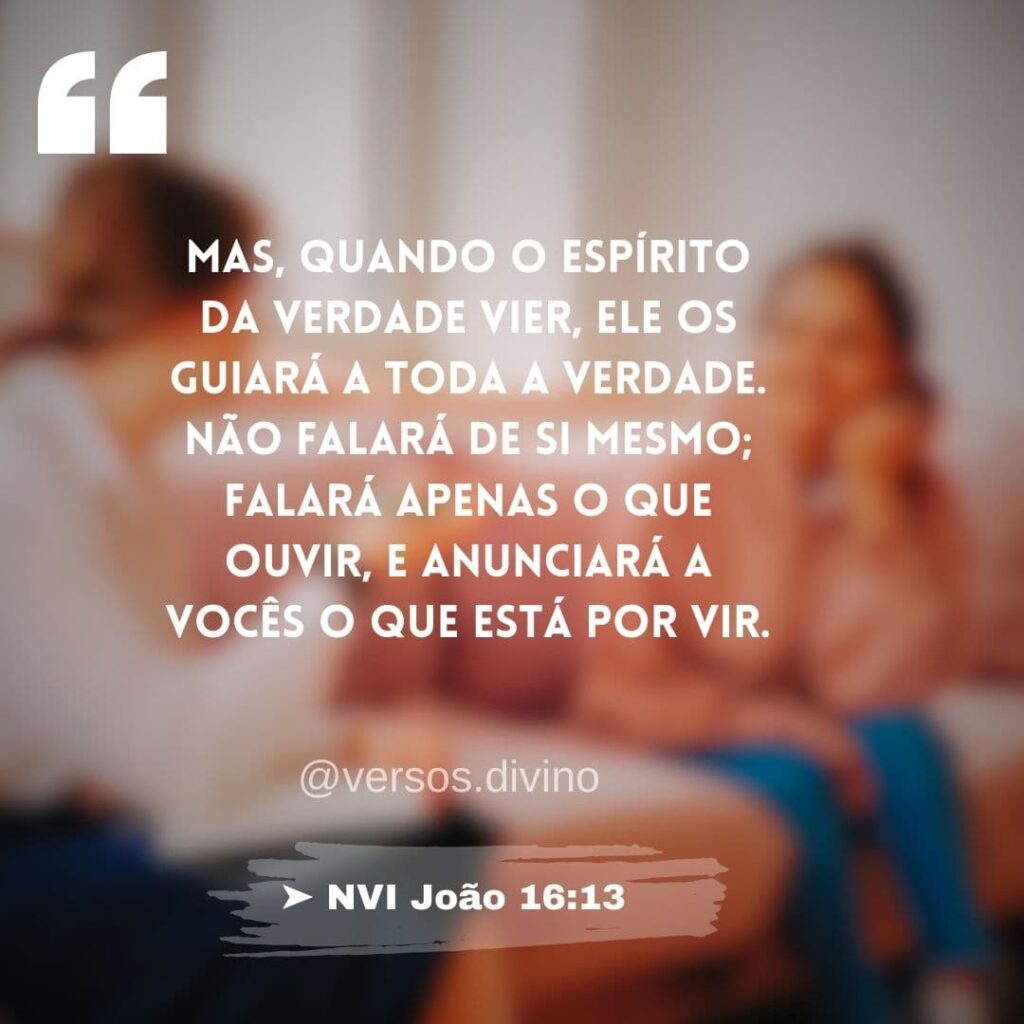 | Mas, quando o Espírito da verdade vier, ele os guiará a toda a verdade. Não falará de si mesmo; falará apenas o que ouvir, e anunciará a vocês o que está por vir. ➤ NVI João 16:13 |