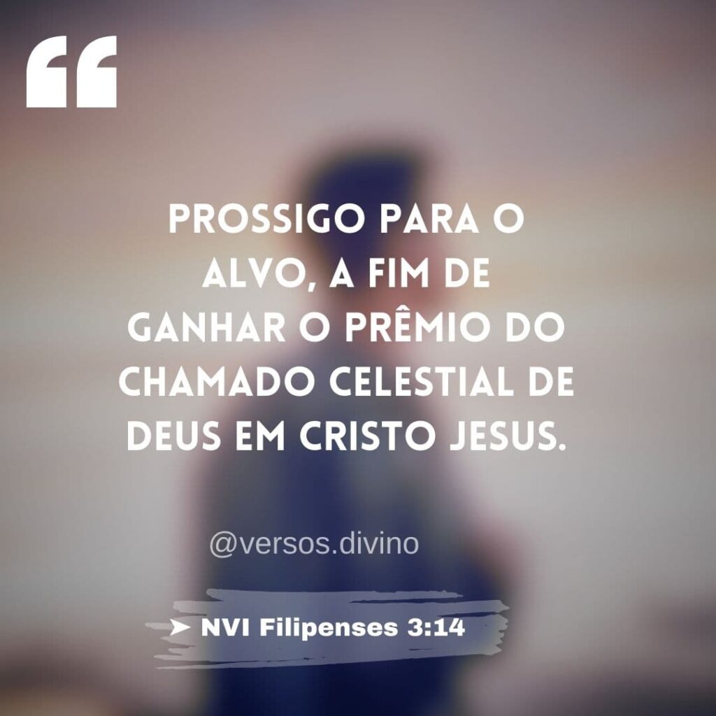 | Prossigo para o alvo, a fim de ganhar o prêmio do chamado celestial de Deus em Cristo Jesus. ➤ NVI Filipenses 3:14 |