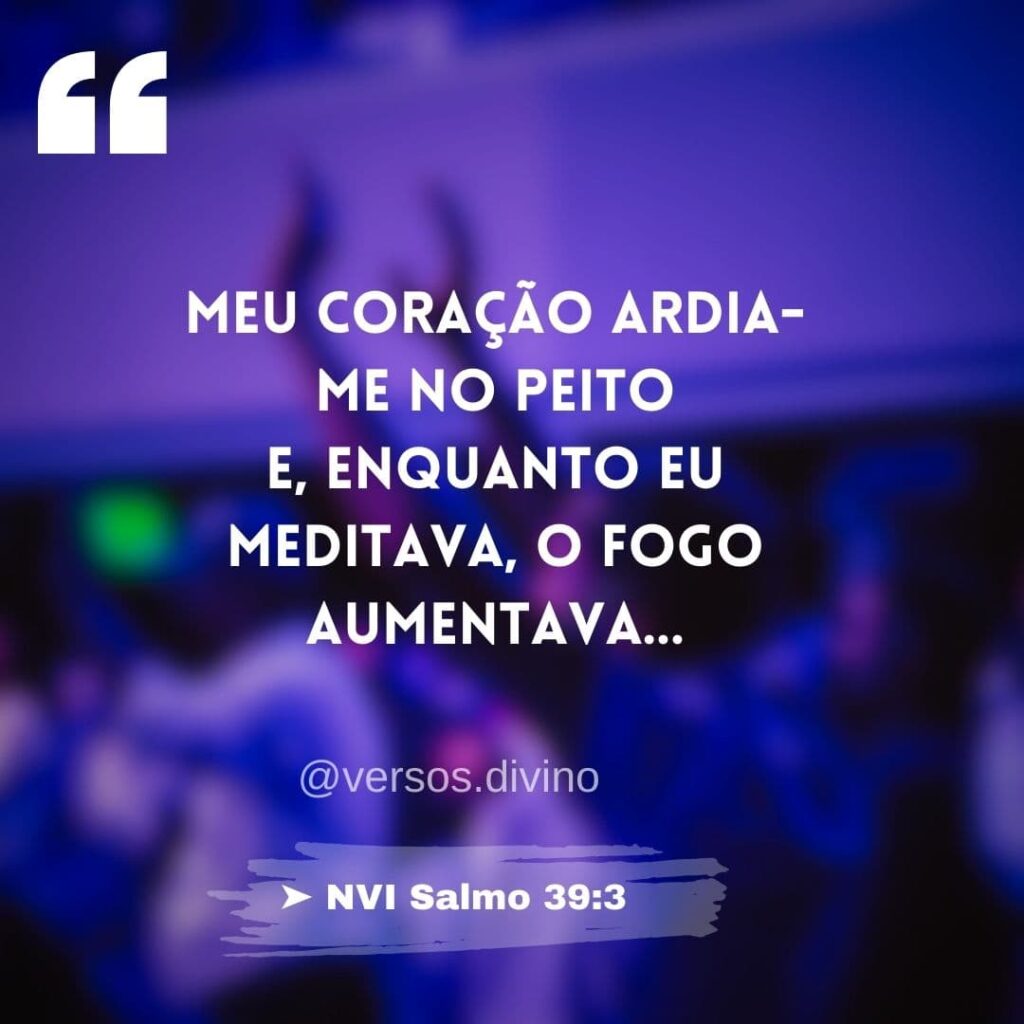 | O meu coração ardia dentro de mim; enquanto meditava, o fogo se acendeu, mas eu falava com a língua. ➤ NVI Salmo 39:3 |