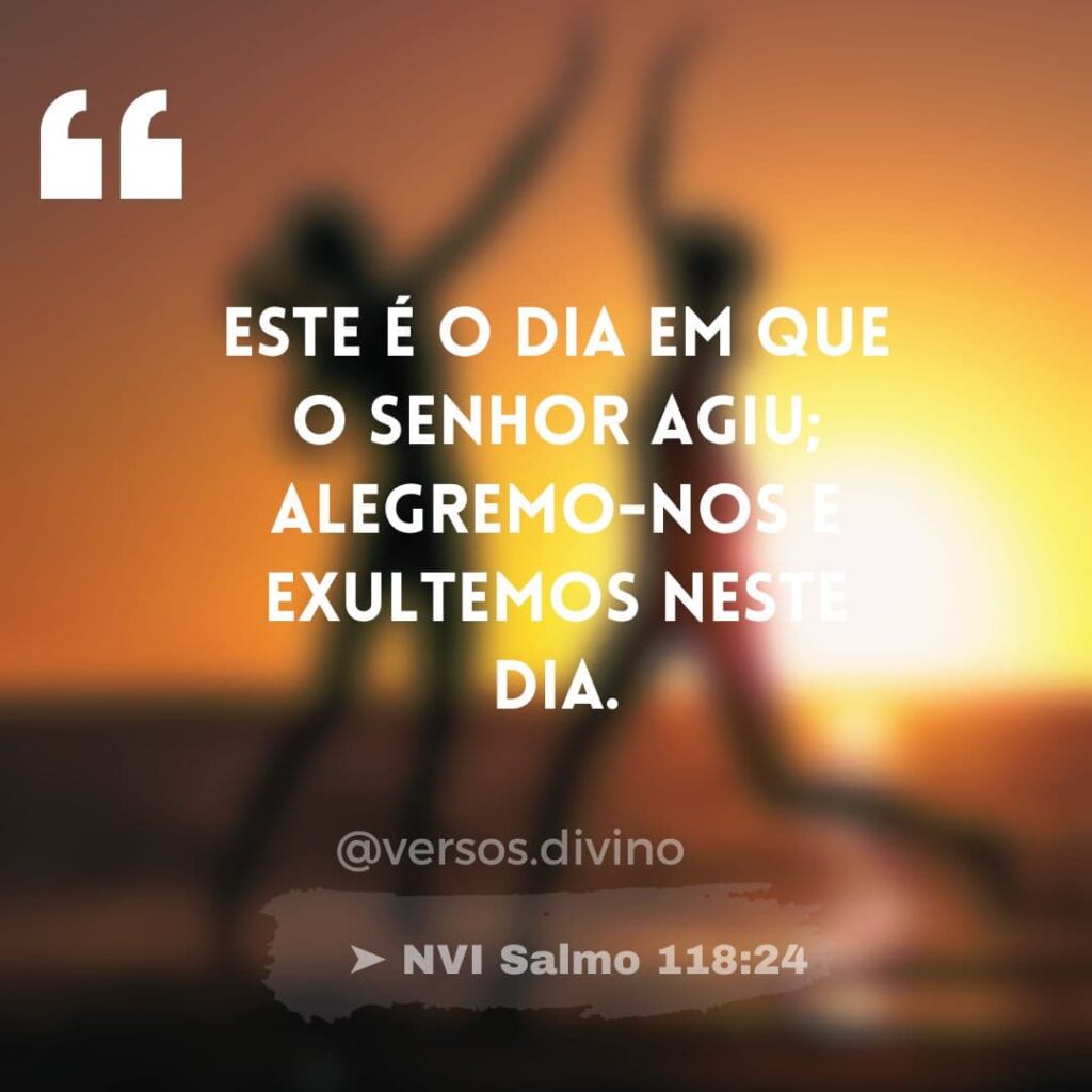 | Este é o dia em que o Senhor agiu; alegremo-nos e exultemos neste dia. ➤ NVI Salmos 118:24 |